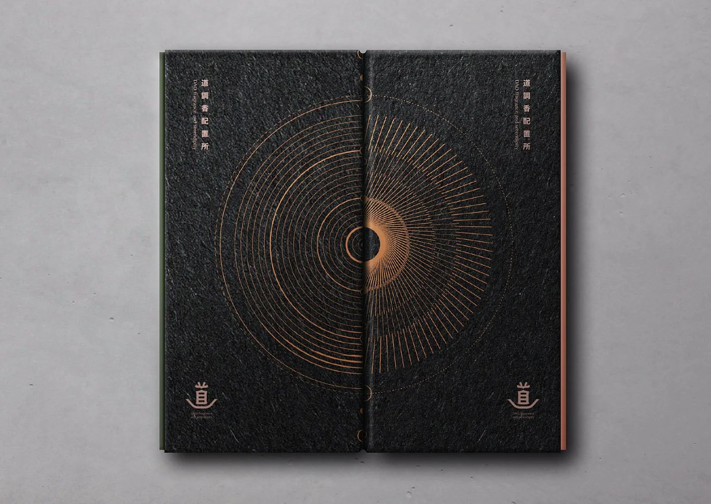 道調香研製所的企業識別,是以陰陽雙生為主軸,將茶、花、葉、香等概念融入標誌當中,並可看出猶如茶器、猶如茶器、蒸餾、油水分離等細節藏入其中,整體意象猶如靜心之人。