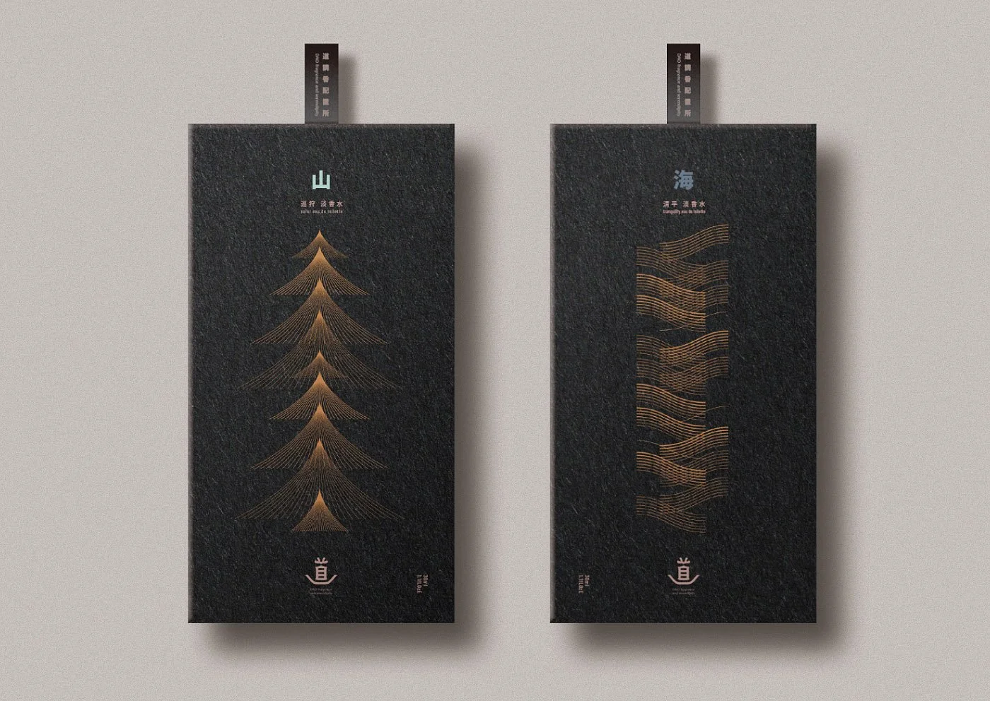 道 共有七大系列商品,共有三款對香:光與影 / 山與海 / 日與月 加一款融合香 侍 的形式呈現,以陰陽調和為主題,因此在分色上需有陰陽相對,並有明暗之分,同時也可以直接聯想名稱之意境。