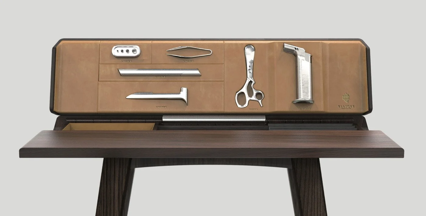 「以終為始」,這是ELLIQUE在設計針鑿藍圖時,想著便是如何讓品味雪茄的手感來回玩味。 我們透過大量的市場調查與使用者研究,以人因工程學用用之設計, 在美學上的堅持,亦毫不鬆懈,如鑽石切割的精密計算,裁切最適切的黃金比例握持角度。更以國家級科研精工製作。