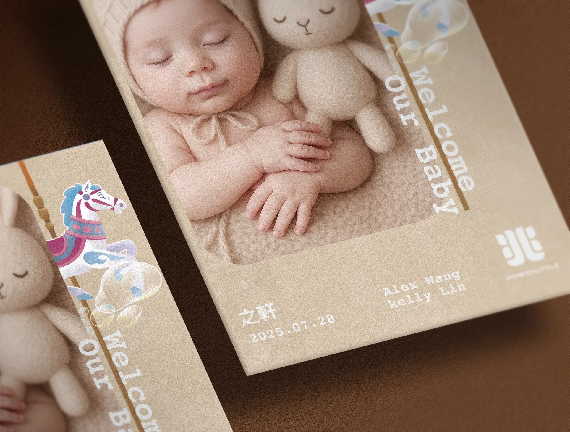 每個寶寶的誕生都是獨特的美好。小卡設計編排襯托優雅花卉,讓喜悅更清晰、更完整地傳遞出幸福的樣貌。