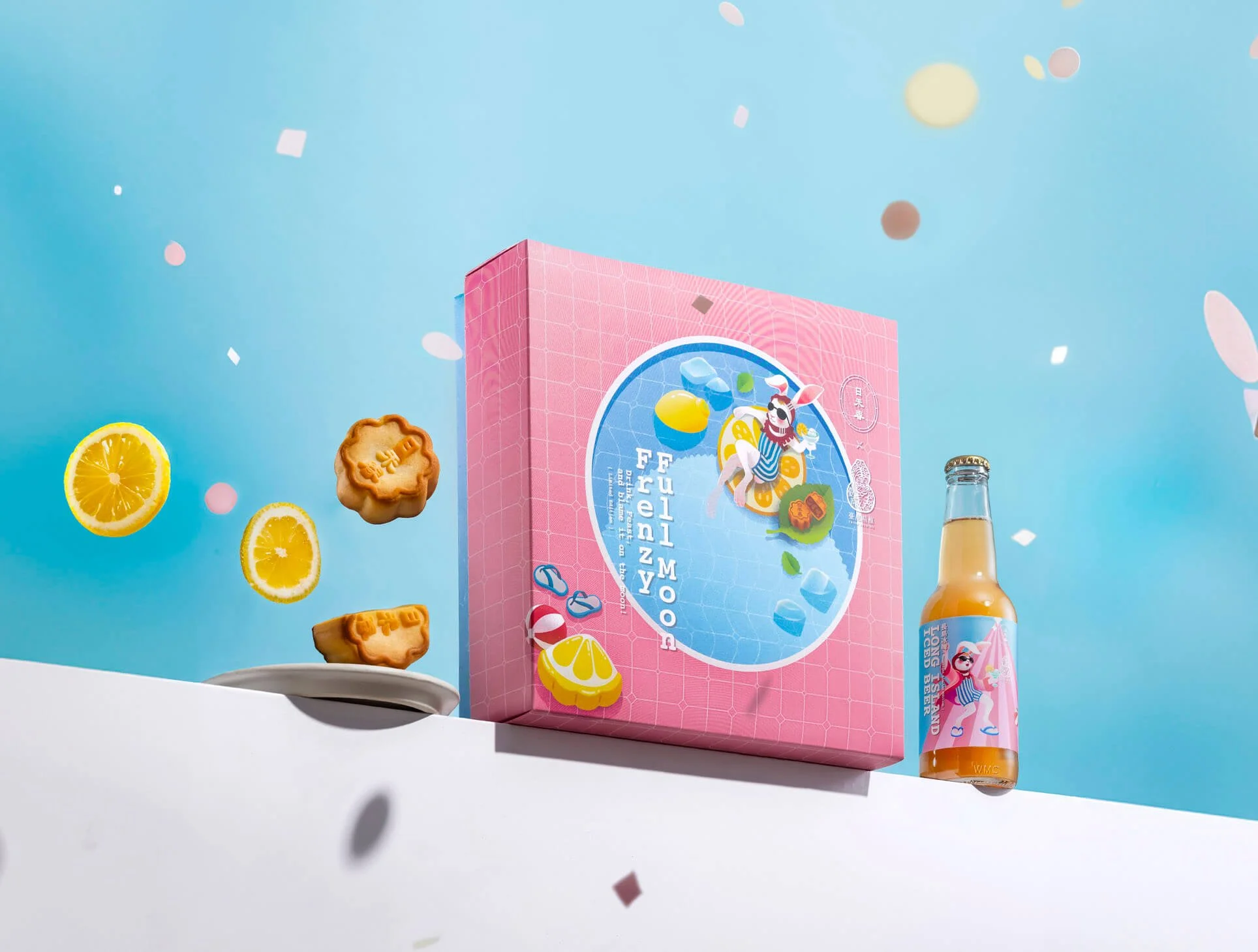 日禾春 × 臺虎精釀 聯手打造「月映池畔」中秋禮盒,以黃檸檬為靈感,將精釀啤酒與糕點結合,呈現一場檸檬系的奇幻泳池派對。